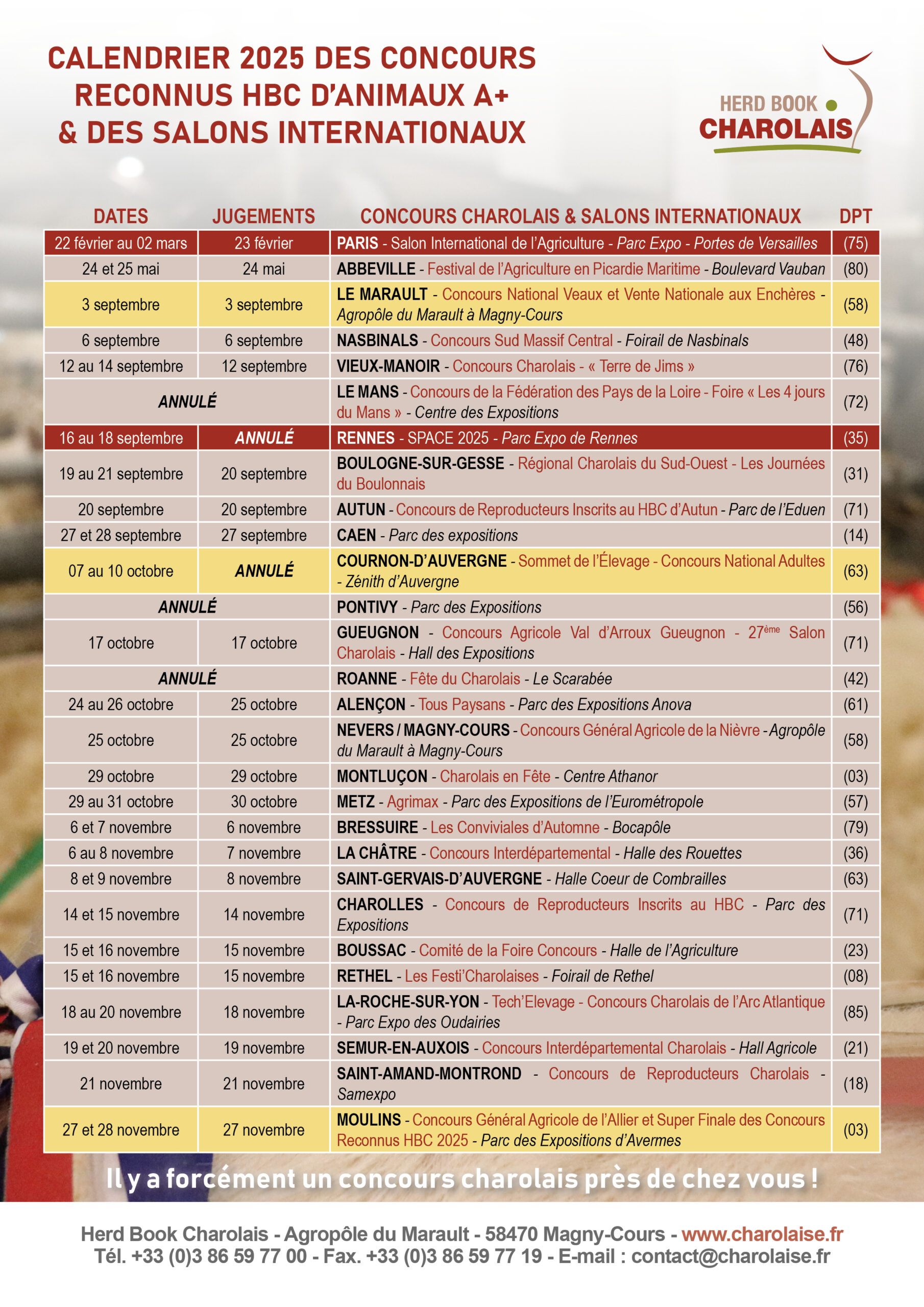 CALENDRIER DES CONCOURS DE L’ANNÉE